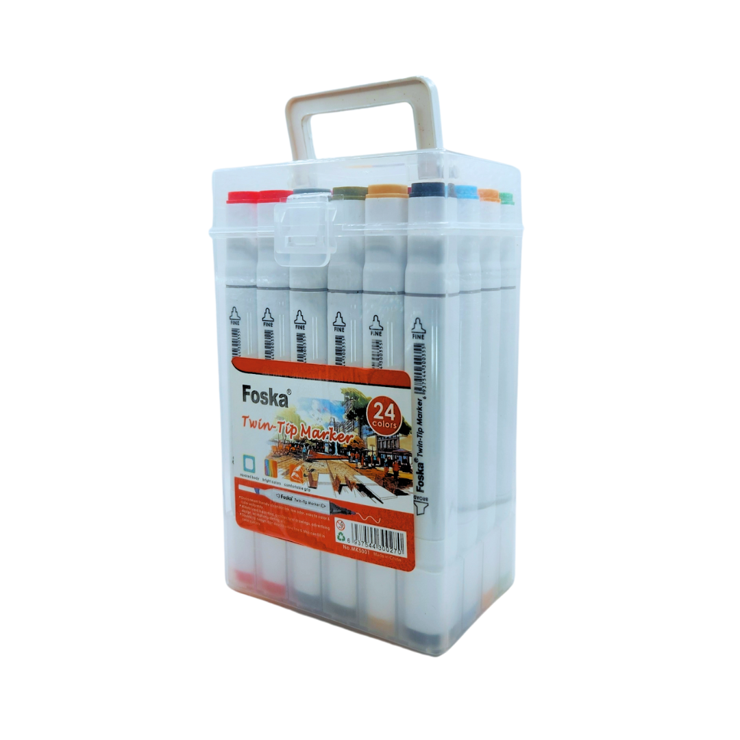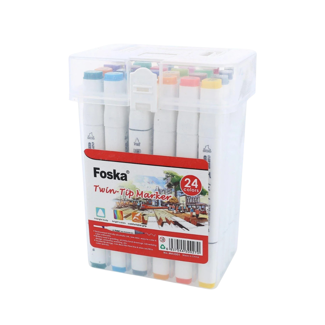Get creative with the Foska 24-Color Twin-Tip Alcohol Markers! These markers feature a dual-tip design — a fine tip for precision work and a broad chisel tip for bold strokes and coverage. The vibrant, alcohol-based ink dries quickly, blends smoothly, and resists smudging. Whether you’re an artist, designer, or hobbyist, this set is perfect for illustrations, sketches, and creative projects.