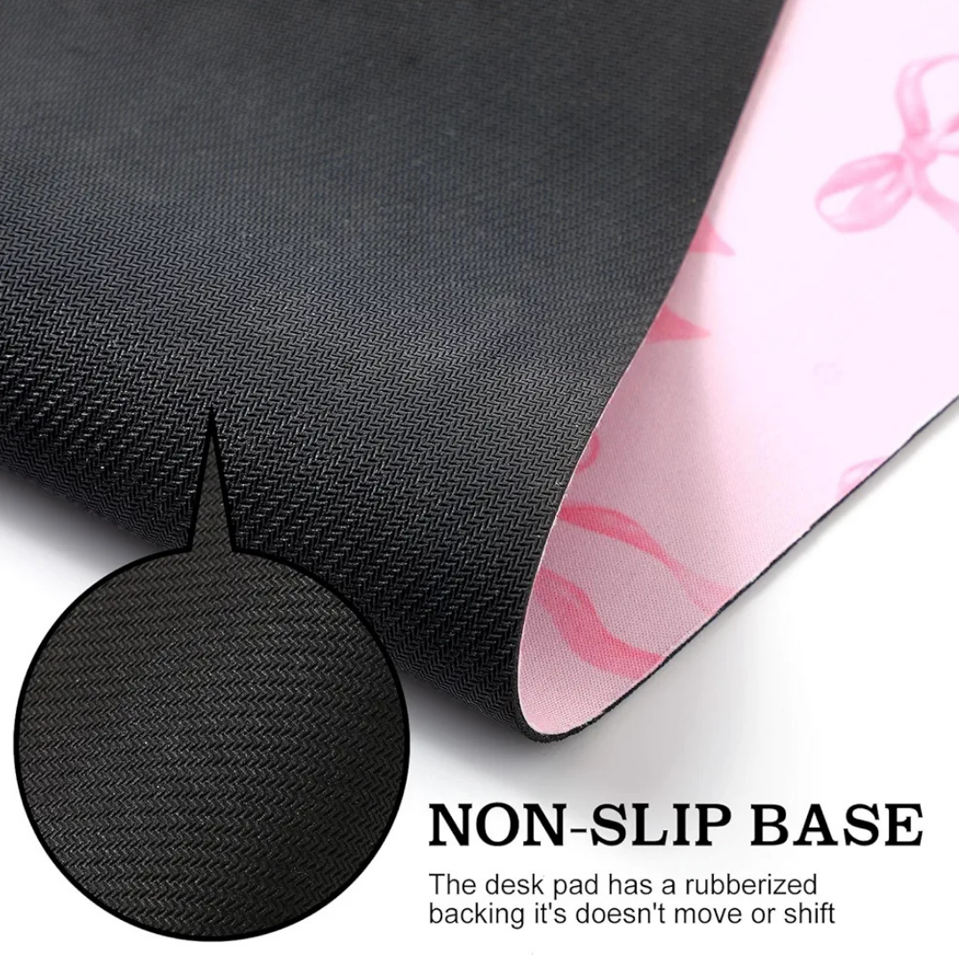 Add a touch of coquette charm to your workspace with the Pink Bows Mouse Pad, a large 23.62″ × 13.78″ desk mat featuring soft pastel bows and a trendy preppy aesthetic. Made with a non-slip rubber base, this mouse pad stays firmly in place during work or gaming, while the smooth surface provides precise tracking for laptops and mice. Ideal for home offices, study spaces, or aesthetic desk setups, this kawaii mouse pad protects your desk while elevating it with a stylish feminine vibe.
